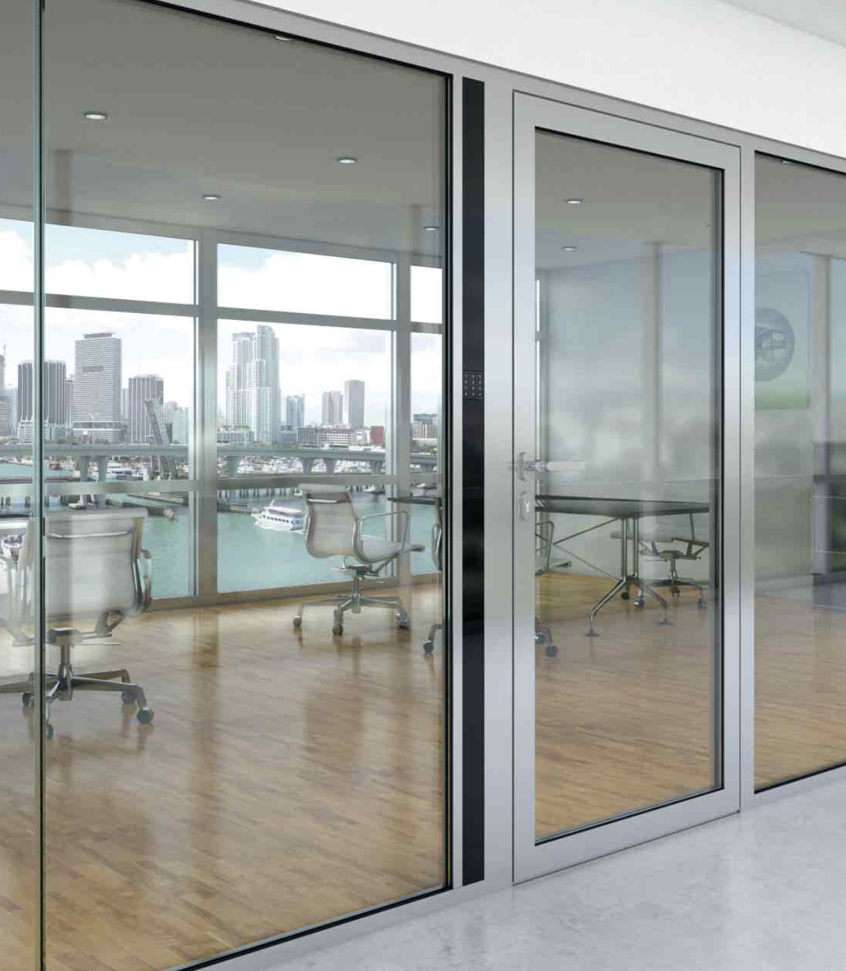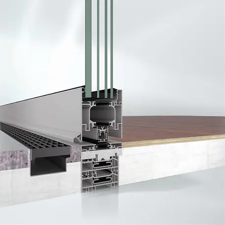 Maximale Transparenz durch großzügige Glasflächen bis 1.400 × 3.000 mm, verdeckte Beschläge und filigrane Ecklösungen mit vertikalen Silikonfugen – für ein elegantes, vielseitiges Design.